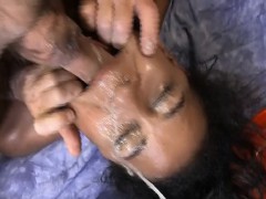 Ebony babe face cum drips