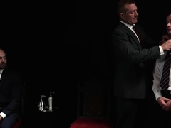Innocent Logan Cross fucked raw by suited DILFs