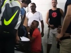 Interracial gay gangbang in the private gym