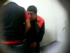 He is fucked in the office toilet by his boss